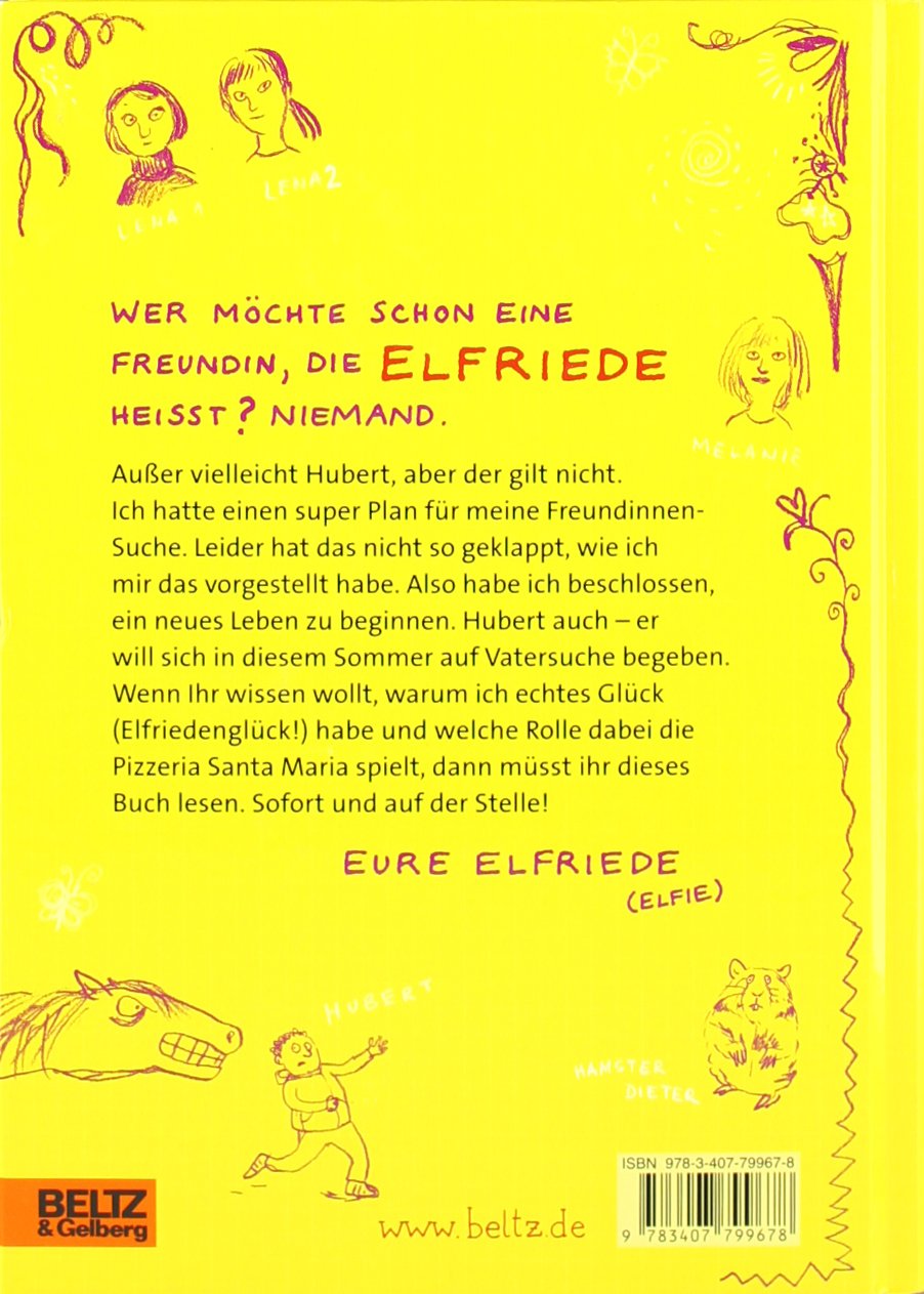 Wer möchte schon eine beste Freundin haben, die Elfriede heißt? Niemand. Außer vielleicht Hubert. Aber der gilt nicht. Auf ihrer Suche tappt Elfie von einem Fettnapf in den nächsten: die blöde Leonie, die Friedhofsaktion, der misslungene Goldraub im Altersheim "Zur letzten Eintracht". Und ausgerechnet in diesem Sommer voller Pleiten beschließt Hubert, sich auf Vatersuche zu begeben. Elfriede, Hubert und Hamster Dieter landen nach einigen Irrungen und Wirrungen in der Pizzeria Santa Maria, die Elfriedes Leben eine entscheidende Wendung gibt.