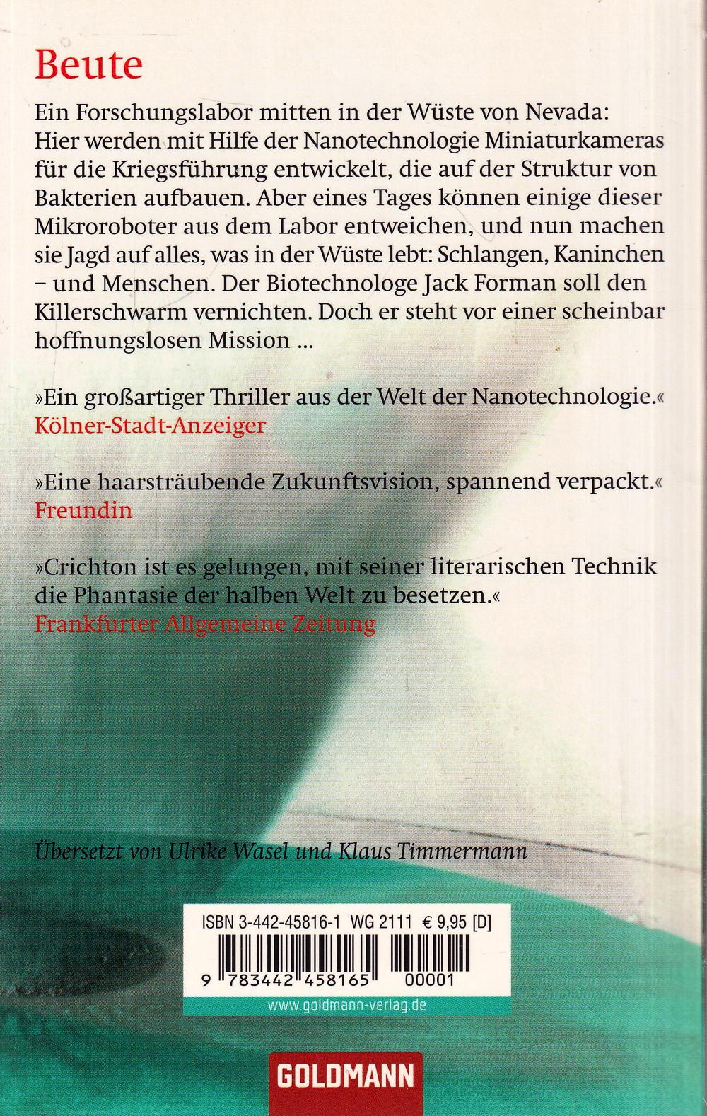 Ein Forschungslabor mitten in der Wüste von Nevada: Hier werden mit Hilfe der Nanotechnologie Miniaturkameras für die Kriegsführung entwickelt, die auf der Struktur von Bakterien aufbauen. Aber eines Tages können einige dieser Mikroroboter aus dem Labor entweichen, und nun machen sie Jagd auf alles, was in der Wüste lebt: Schlangen, Kaninchen - und Menschen. Der Biotechnologe Jack Forman soll den Killerschwarm vernichten. Doch er steht vor einer scheinbar hoffnungslosen Mission ...