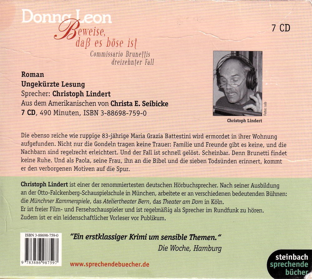 Die ebenso reiche wie ruppige 83-jährige Maria Grazia Battestini wird ermordet in ihrer Wohnung aufgefunden. Nicht nur die Gondeln tragen keine Trauer: Familie und Freunde gibt es keine, und die Nachbarn sind regelrecht erleichtert. Und der Fall ist schnell gelöst. Scheinbar. Denn Brunetti findet keine Ruhe. Und als Paola, seine Frau, ihn an die Bibel und die sieben Todsünden erinnert, kommt er den verborgenen Motiven auf die Spur.