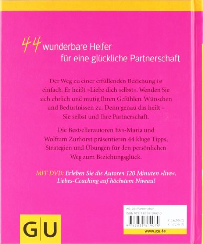 Was ist das Geheimnis einer glücklichen Partnerschaft? Es ist der einfache, aber radikale Wechsel des Blickwinkels: weg vom anderen, hin zu mir selbst. Dazu gehört eine gute Portion Ehrlichkeit und die Bereitschaft mich selbst so anzunehmen wie ich bin. Dann können Wunder geschehen. Das neue Buch des Bestseller-Autorenpaares Eva-Maria und Wolfram Zurhorst zeigt ganz praktisch, wie jeder Mensch diesen Weg des -Liebe dich selbst- gehen kann. Auf spannende, erfrischende und oft überraschende Weise greifen sie jeweils einen Beziehungsaspekt auf und lenken den Blick des Lesers immer wieder zurück auf das Wesentliche - die eigenen Bedürfnisse, die eigenen Gefühle, Wünsche, Ängste und Sehnsüchte. Schritt für Schritt wird so ein neuer, heilsamer Umgang mit sich selbst und dem Partner möglich: Beziehungsglück! Bonus zum Buch: Die beigefügte DVD, auf der das charismatische Autorenpaar eindringlich seine Botschaft vermittelt.