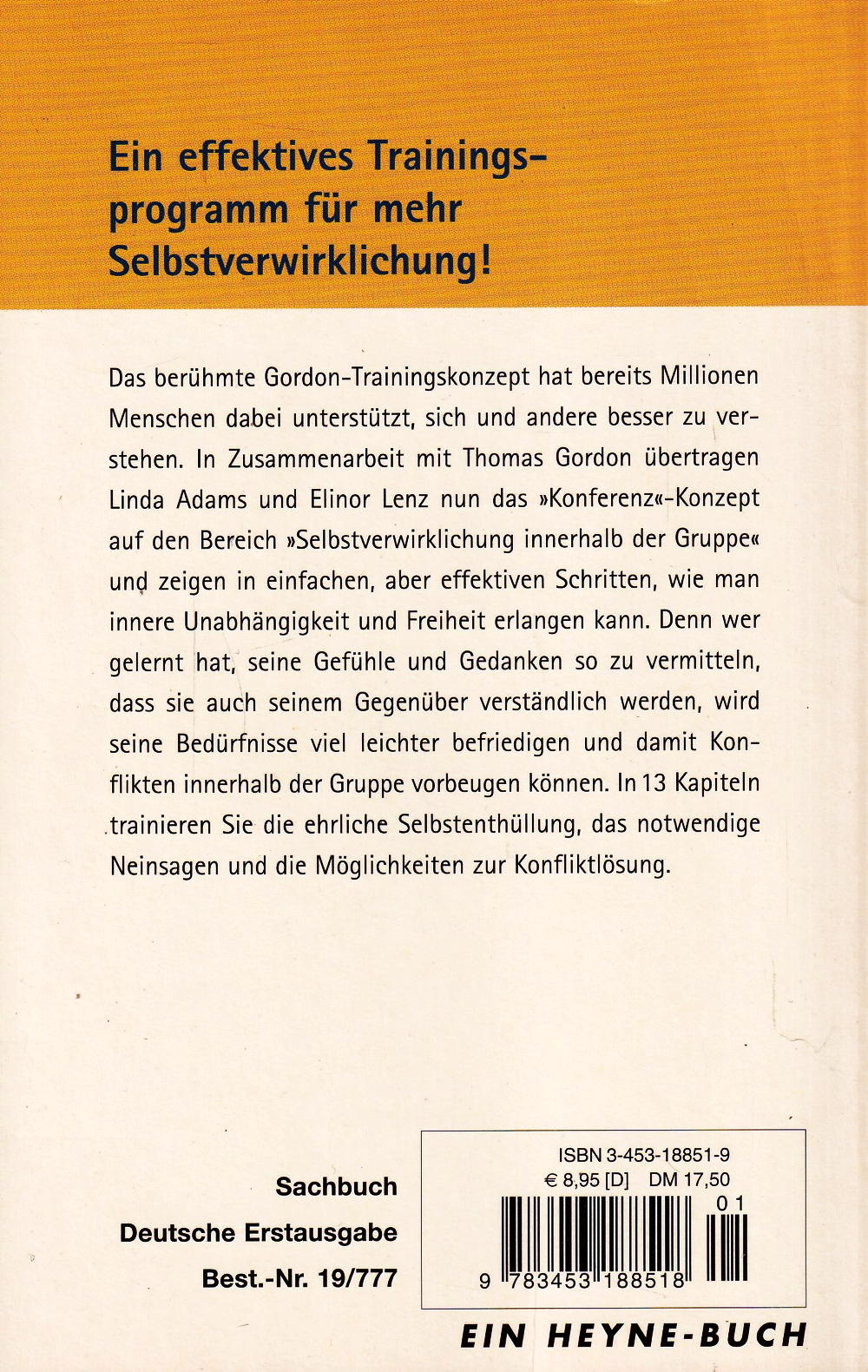 Das berühmte Gordon-Trainingskonzept hat bereits Millionen Menschen dazu verholfen, sich und andere besser zu verstehen. In Zusammenarbeit mit Thomas Gordon übertragen die Autorinnen nun das «Konferenz»-Konzept auf den Bereich «Selbstverwirklichung innerhalb der Gruppe» und zeigen in einfachen, aber effektiven Schritten, wie man innere Unabhängigkeit und Freiheit erlangen kann.