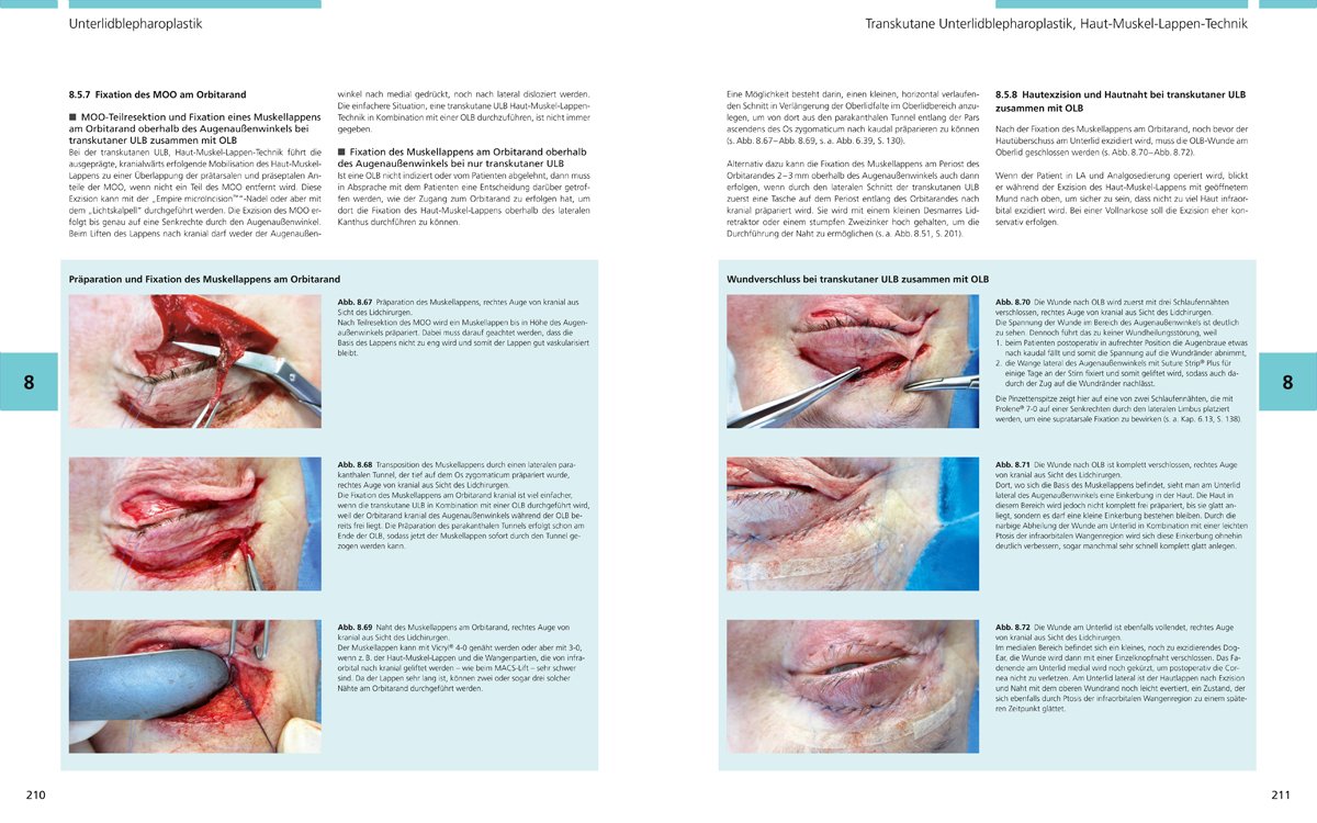 Nach der erfolgreichen Reihe von Bildatlanten über dermato-ästhetische Verfahren erscheint nun das erste Referenzwerk aus der Chirurgie: Der Bildatlas Lidchirurgie vermittelt nach dem bewährten Konzept der Hands-on Lehre strukturiert und mit herausstechenden Abbildungen Praxiswissen für den Facharzt. Von den anatomischen Details der Lidregion, über das prä- und postoperative Patientenmanagement, bis hin zu den einzelnen operativen Eingriffen werden die Aspekte der Lidkorrektur aus Expertensicht aufbereitet. Anschauliche und verständliche Anweisungen befähigen dabei zu einer autonomen Umsetzung des Dargestellten. Grundlegende Schnitt- und Nahttechniken werden anhand von intraoperativen Bildern und hochwertigen Illustrationen beigebracht. Einzelne Indikationen werden im Hinblick auf die individuelle Planung, Operation und das Kompliktionsmanagament abgehandelt. Auf dem deutschen Markt existiert bislang kein vergleichbares Lehrbuch, das chirurgische Disziplinen ebenso klar strukturiert, anschaulich und praxiseffektiv darstellt.