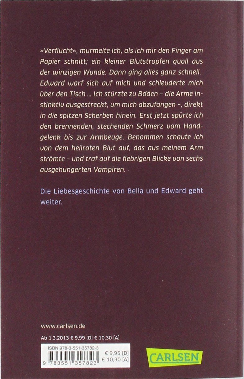 Für immer mit Edward zusammen zu sein - Bellas Traum scheint wahr geworden! Kurz nach ihrem 18. Geburtstag findet er jedoch ein jähes Ende, als ein kleiner, aber blutiger Zwischenfall ihr fast zum Verhängnis wird. Edward hat keine andere Wahl: Er muss sie verlassen. Für immer. Bella zerbricht beinahe daran, einzig die Freundschaft zu Jacob gibt ihr die Kraft weiterzuleben. Da erfährt Bella, dass Edward in höchster Gefahr schwebt. Und sein Schicksal liegt in ihren Händen. Sie muss zu ihm, rechtzeitig, bis zur Mittagsstunde ...