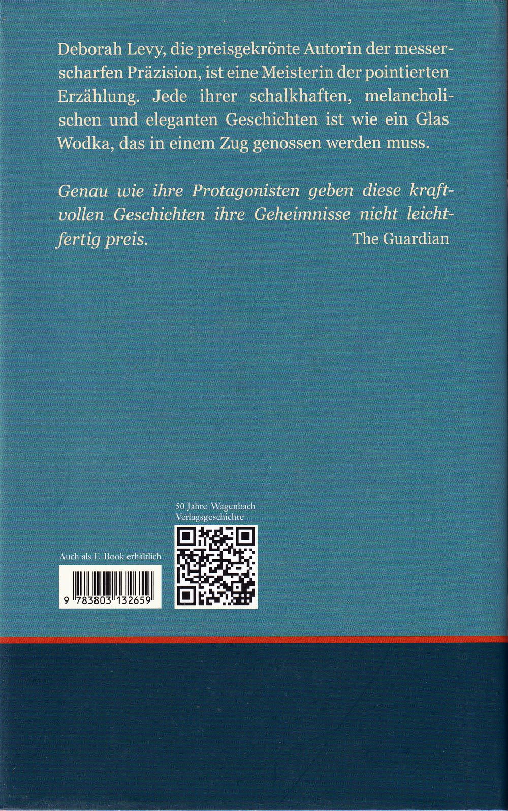 Deborah Levy, 1959 in Südafrika geboren, lebt als Autorin in London. Nach einigen Prosaarbeiten schrieb sie vor allem Drehbücher und Theaterstücke, die unter anderem von der Royal Shakespeare Company aufgeführt wurden.