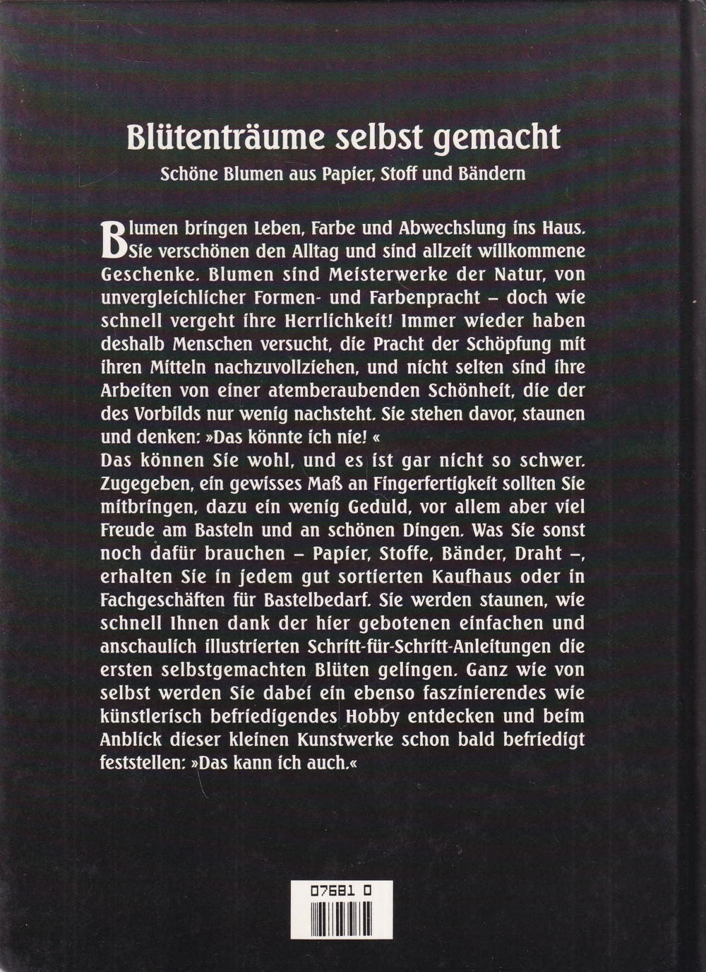 Zugegeben, ein gewisses Mass an Fingerfertigkeit sollten Sie mitbringen, dazu ein wenig Geduld, vor allem aber viel Freude am Basteln und an schönen Dingen. Was Sie sonst noch dafür brauchen – Papier, Stoffe, Bänder, Draht –, erhalten Sie in jedem gut sortierten Kaufhaus oder in Fachgeschäften für Bastelbedarf. Sie werden staunen, wie schnell Ihnen dank der hier gebotenen einfachen und anschaulich illustrierten Schritt-für-Schritt-Anleitungen die ersten selbstgemachten Blüten gelingen. Ganz wie von selbst werden Sie dabei ein ebenso faszinierendes wie künstlerisch befriedigendes Hobby entdecken und beim Anblick dieser kleinen Kunstwerke schon bald befriedigt feststellen: »Das kann ich auch. «
