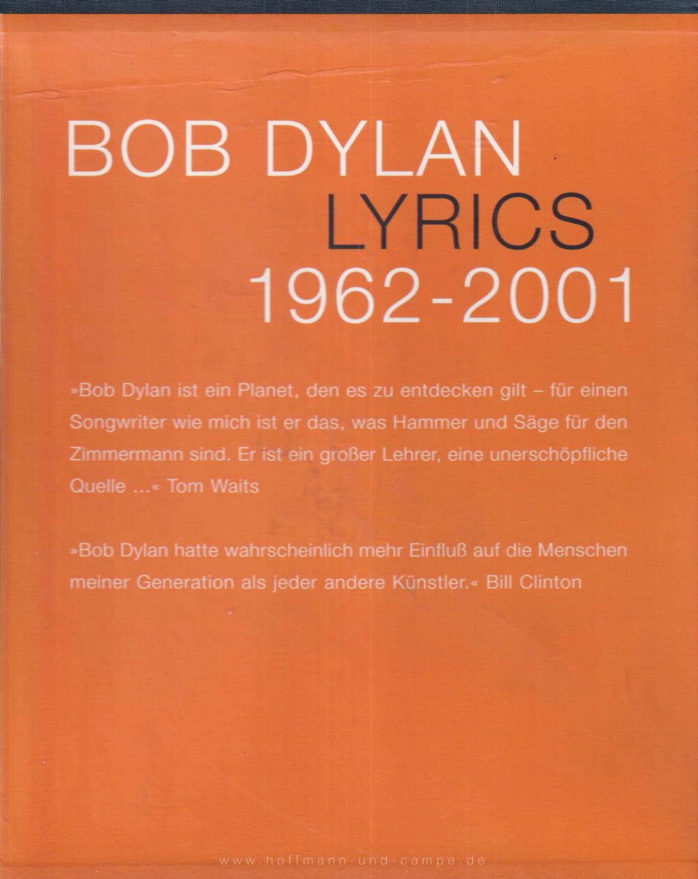 Bob Dylan ist ein Planet, den es zu entdecken gilt – für einen Songwriter wie mich ist er das, was Hammer und Säge für den Zimmermann sind. Er ist ein grosser Lehrer, eine unerschöpfliche Quelle... Tom Waits »
