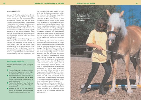 Ob Spring- oder Westernpferd, Turniercrack oder Knuddelpony - Bodenarbeit ist für jedes Pferd ein Muss. Die Schulung ohne Reiter ist die Grundlage für alle weiteren Ausbildungsschritte. Doch nicht nur Jungpferde profitieren davon, sondern auch erwachsene Reitpferde: Das Training vom Boden aus fördert die Nervenstärke, das Körpergefühl, die Aufmerksamkeit und den Gehorsam, und mit den anspruchsvolleren Bodenarbeitsvarianten kann man sein Pferd präzise und schonend gymnastizieren - die ideale Ergänzung zum Training unter dem Sattel. Dieses Buch stellt die verschiedenen Methoden der Bodenarbeit vor - von der Grunderziehung am Halfter über die Arbeit mit Gebisszäumung bis hin zum freien Training im Round Pen und zur Langzügel-Arbeit. Schritt für Schritt wird gezeigt, wie man in den einzelnen Ausbildungsphasen vorgeht, was das Pferd dabei lernt und wie man Schwierigkeiten meistert. Ein unentbehrliches Praxisbuch für alle Pferdeleute, die ihre Vierbeiner systematisch, konsequent und liebevoll erziehen wollen - vom Pferde-Kindergarten bis zum Gymnasium.