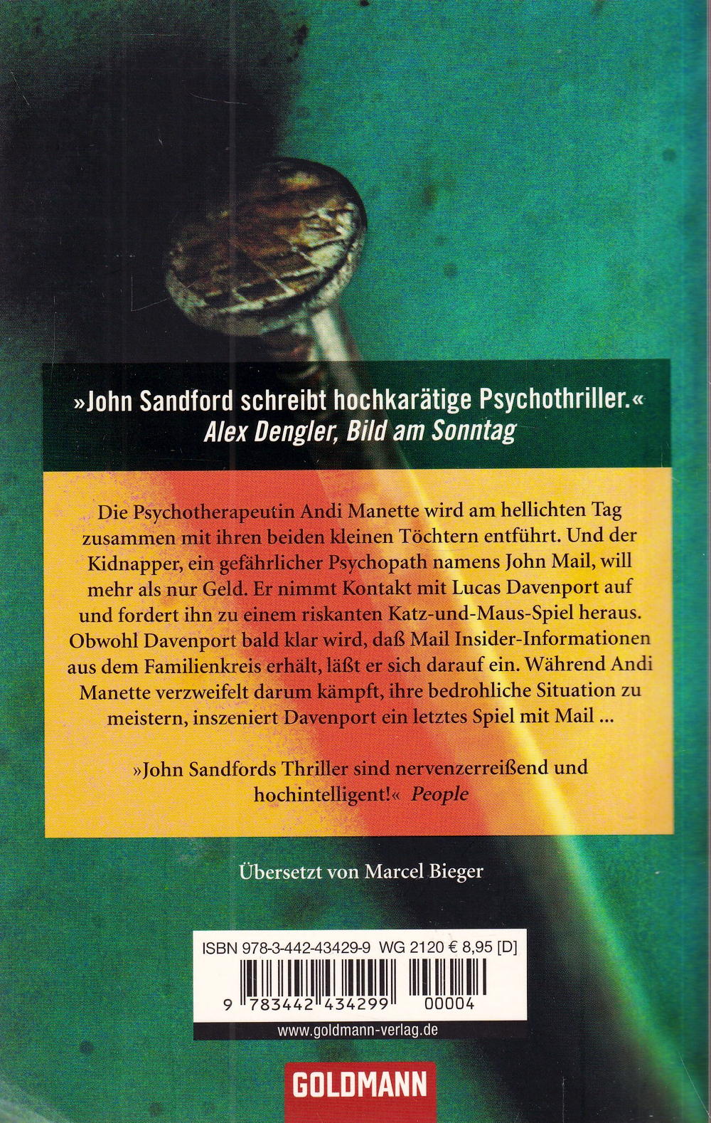 Die Psychotherapeutin Andi Manette wird am hellichten Tag zusammen mit ihren beiden kleinen Töchtern entführt. Ein ehemaliger Patient hat die Frau gekidnappt, ein gefährlicher Psychopath namens John Mail, der bereits seit mehreren Jahren hinter Andi her war. Und Mail will mehr als nur Geld. Er nimmt Kontakt mit Lucas Davenport auf, um den Inspektor zu einem riskanten Katz-und-Maus-Spiel herauszufordern. Obwohl Davenport bald klar wird, dass Mail Insider-Informationen aus dem Familienkreis erhalten muss, lässt er sich notgedrungen auf die Manöver des Entführers ein. Und langsam kommt die Polizei dem Entführer auf die Spur - zu langsam. Während Andi Manette verzweifelt darum kämpft, ihre bedrohliche Situation unter Kontrolle zu bekommen, versucht Davenport, ein letztes Spiel mit Mail zu inszenieren, bevor es zu spät ist...