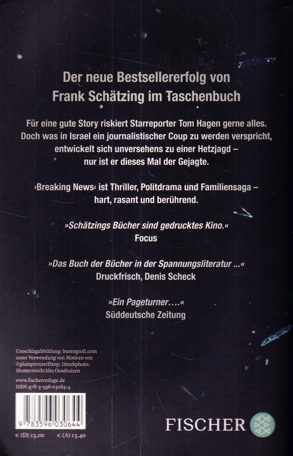 Frank Schätzing, geboren 1957 in Köln, studierte Kommunikationswissenschaften, war Creative Director in internationalen Agenturen-Networks und ist Mitbegründer der Kölner Werbeagentur Intevi. Anfang der Neunziger begann er, Novellen und Satiren zu schreiben und veröffentlichte 1995 einen historischen Roman. Es folgten weitere Romane und ein Band mit Erzählungen. Viele seiner Bücher sind Bestseller, wurden teilweise weltweit in zahlreichen Sprachen übersetzt und auch verfilmt.§2004 erhielt Frank Schätzing den Corine-Preis und 2005 den Deutschen Science-Fiction-Preis. Frank Schätzing lebt und arbeitet in Köln.