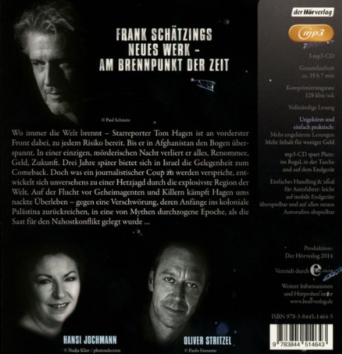 Wo immer die Welt brennt – Starreporter Tom Hagen ist an vorderster Front dabei, zu jedem Risiko bereit. Bis er in Afghanistan den Bogen überspannt. In einer einzigen, mörderischen Nacht verliert er alles, Renommee, Geld, Zukunft. Drei Jahre später bietet sich in Israel die Gelegenheit zum Comeback. Doch was ein journalistischer Coup zu werden verspricht, entwickelt sich unversehens zu einer Hetzjagd durch die explosivste Region der Welt. Auf der Flucht vor Geheimagenten und Killern kämpft Hagen ums nackte Überleben – gegen eine Verschwörung, deren Anfänge ins koloniale Palästina zurückreichen, in eine von Mythen durchzogene Epoche, als die Saat für den Nahostkonflikt gelegt wurde …
