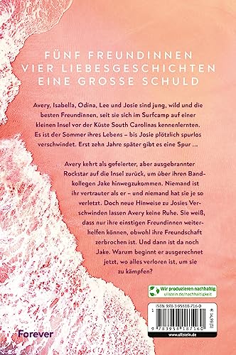 Fünf Freundinnen. Vier Liebesgeschichten. Eine grosse Schuld. Avery, Isabella, Odina, Lee und Josie sind jung, wild und die besten Freundinnen, seit sie sich im Surfcamp auf einer kleinen Insel vor der Küste South Carolinas kennenlernten. Es ist der Sommer ihres Lebens – bis Josie plötzlich spurlos verschwindet. Erst zehn Jahre später gibt es eine Spur...Avery kehrt als gefeierter, aber ausgebrannter Rockstar auf die Insel zurück, um über ihren Bandkollegen Jake hinwegzukommen. Niemand ist ihr vertrauter als er – und niemand hat sie je so verletzt. Doch neue Hinweise zu Josies Verschwinden lassen Avery keine Ruhe. Sie weiss, dass nur ihre einstigen Freundinnen weiterhelfen können, obwohl ihre Freundschaft zerbrochen ist. Und dann ist da noch Jake. Warum beginnt er ausgerechnet jetzt, wo alles verloren ist, um sie zu kämpfen?