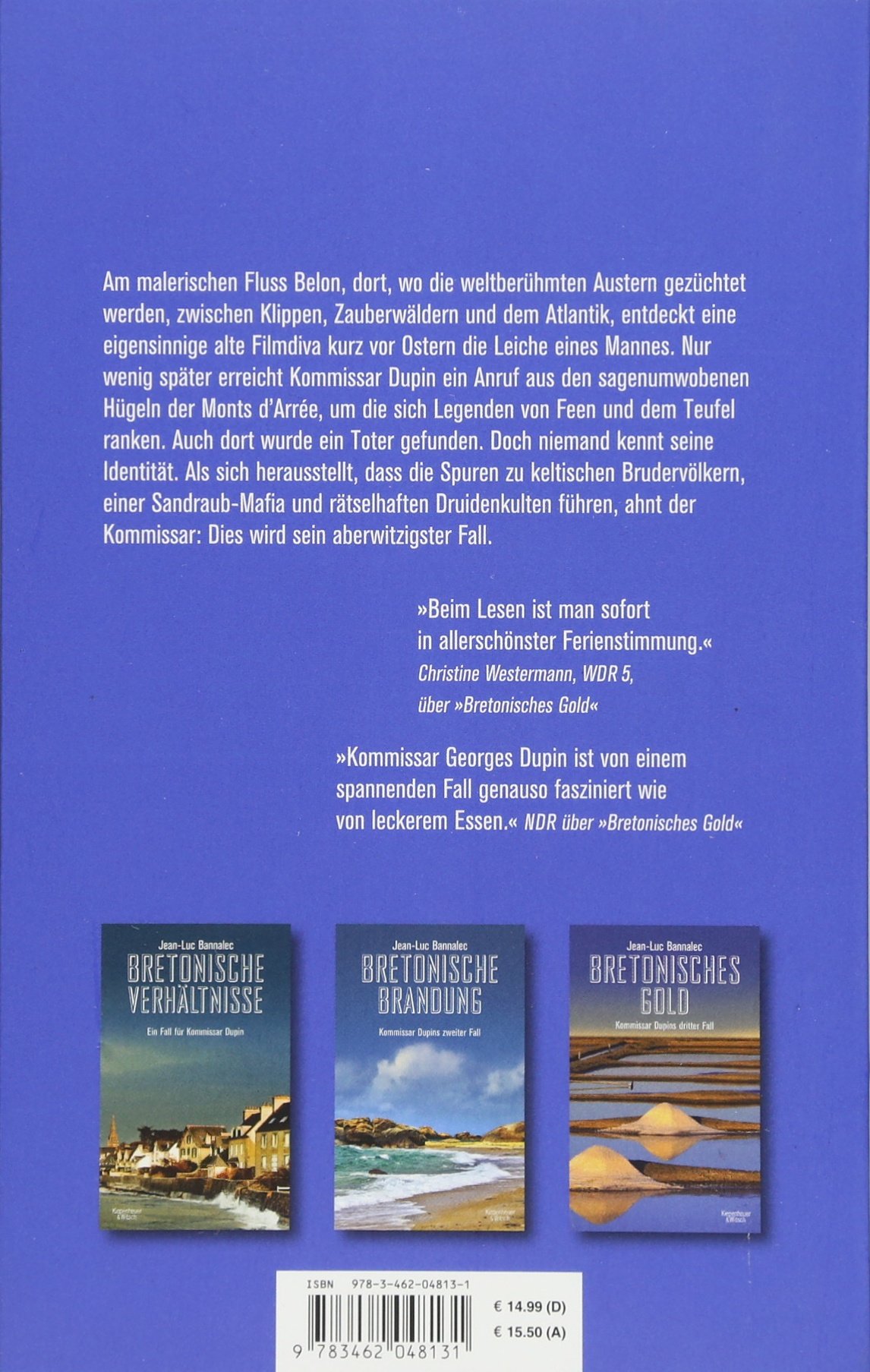 Am malerischen Fluss Belon, dort, wo die weltberühmten Austern gezüchtet werden, zwischen Klippen, Zauberwäldern und dem Atlantik, entdeckt eine eigensinnige alte Filmdiva kurz vor Ostern die Leiche eines Mannes. Nur wenig später erreicht Kommissar Dupin ein Anruf aus den sagenumwobenen Hügeln der Monts d'Arrée, um die sich Legenden von Feen und dem Teufel ranken. Auch dort wurde ein Toter gefunden. Doch niemand kennt seine Identität. Als sich herausstellt, dass die Spuren zu keltischen Brudervölkern, einer Sandraub-Mafia und rätselhaften Druiden-Kulten führen, ahnt der Kommissar: Dies wird sein aberwitzigster Fall.