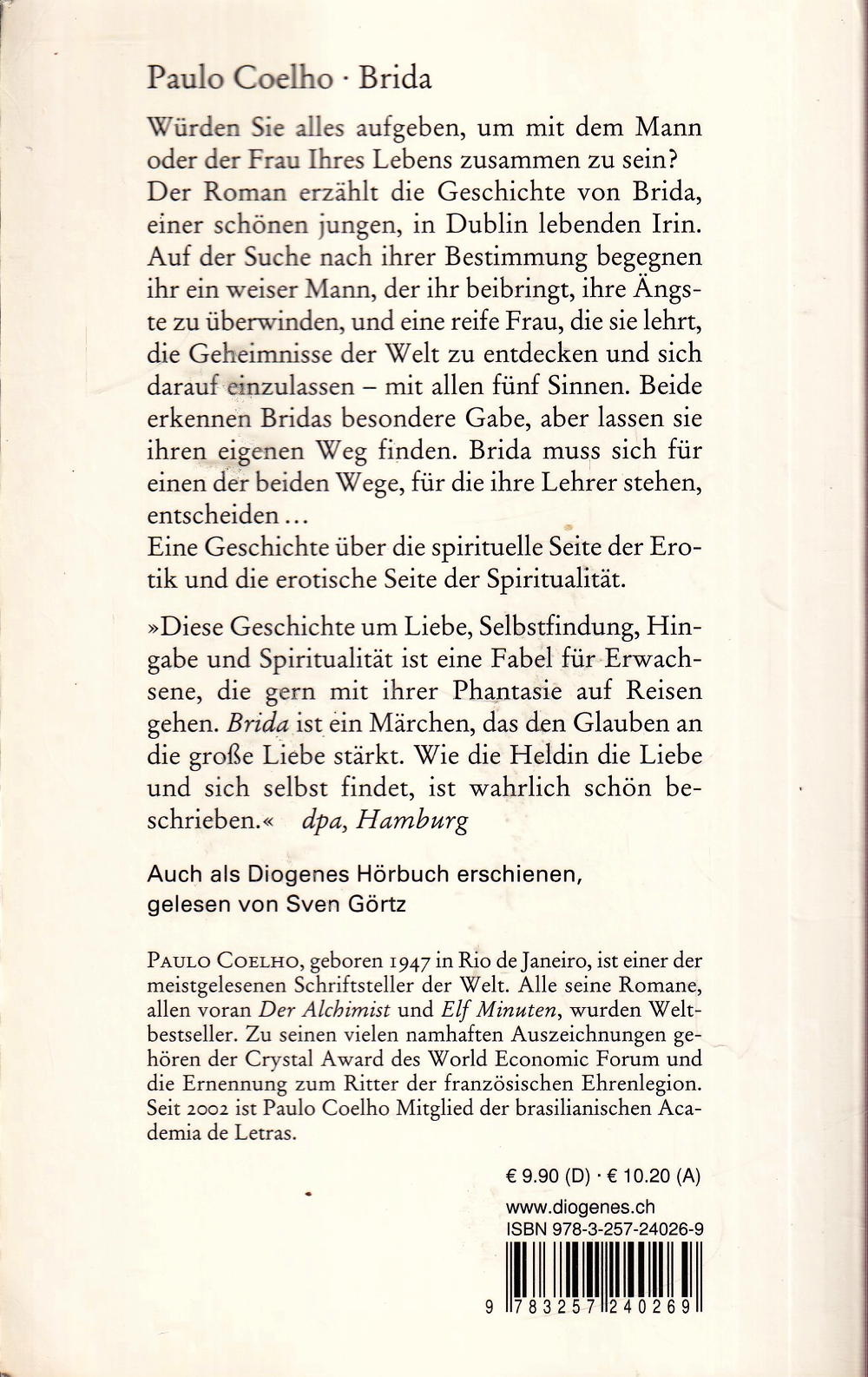 »Aber woran erkennt man den Mann oder die Frau seines Lebens?«, fragte Brida. »Du musst etwas riskieren«, war die Antwort. »Dabei wirst du oft scheitern, du wirst enttäuscht werden, desillusioniert. Aber wenn du nie aufhörst, nach deiner Liebe zu suchen, wirst du sie am Ende finden.