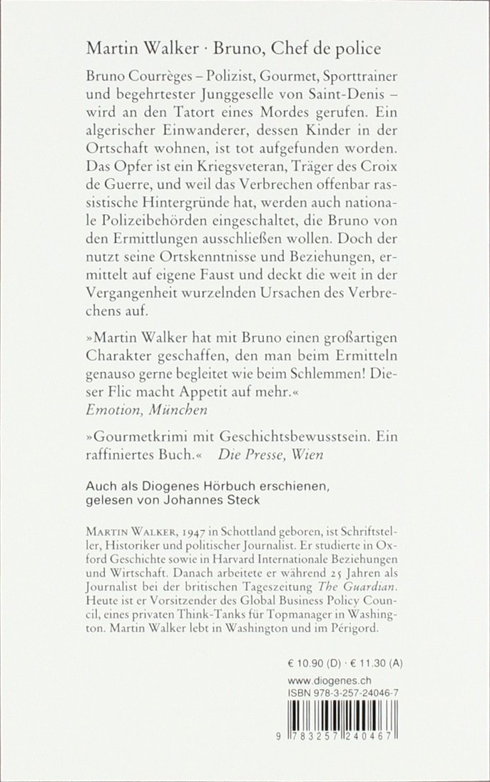 Martin Walker, geboren 1947, ist gebürtiger Schotte und nicht nur Schriftsteller, sondern auch Historiker und politischer Journalist. Er lebt in Washington und im Périgord und studierte Geschichte in Oxford sowie internationale Beziehungen und Wirtschaft in Harvard. Danach war er 25 Jahre lang Journalist bei der britischen Tageszeitung "The Guardian". Heute ist Martin Walker Vorsitzender des Global Business Policy Council, eines privaten Think Tanks für Topmanager mit Sitz in Washington. Er verfasste zahlreiche Sachbücher, unter anderem über den Kalten Krieg, über Gorbatschow und die Perestroika, über Präsident Bill Clinton sowie über das neue Amerika. Martin Walkers Bruno-Romane erscheinen gleichzeitig in zehn Sprachen.