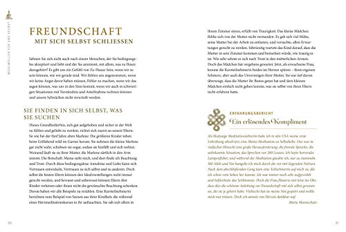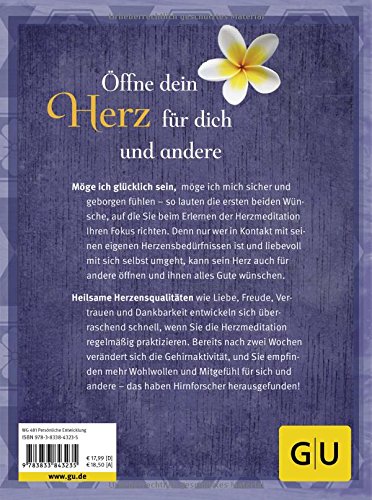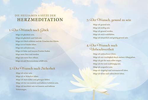 Buddhas Herzmeditation, auch bekannt als Metta-Meditation, ist ein wunderbarer Weg, Zugang zu sich selbst und seinen Herzenswünschen zu finden. Die Autorinnen, beide langjährige Meditationslehrerinnen, zeigen, wie wir unserem inneren Kritiker auf die Schliche kommen, indem wir Kontakt mit unserem Herzen aufnehmen. Freundschaft mit uns selbst zu schliessen, ist der erste Schritt, bevor wir uns anderen zuwenden. Beginnend mit Menschen, bei denen es uns leicht fällt, ihnen Gutes zu wünschen, dehnen unser Wohlwollen dann immer weiter aus - auch auf Menschen, mit denen wir Schwierigkeiten haben. Auf dieser inneren Reise begegnen wir Herzensqualitäten wie Dankbarkeit, Vertrauen, Grosszügigkeit, Vergebung, Mitgefühl, Verbundenheit, Freude und Gelassenheit, die wir mit achtsamkeitsbasierten Übungen und Meditationen stärken können. Die CD mit angeleiteten Meditationen ist eine sehr gute Unterstützung auf diesem Weg.