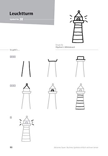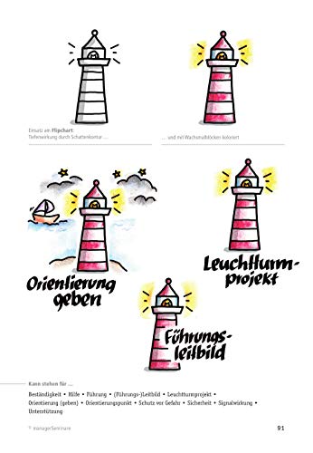 Der Leuchtturm ist ein kraftvolles Motiv. Als ein Symbol für Sicherheit, Orientierung und Führung bringt er Bedeutungen und Emotionen treffend auf den Punkt. Lernen auch Sie, einfache Motive zu zeichnen und verstärken Sie Ihre Aussagen in Zukunft durch eigene handgezeichnete Business-Symbole. Dieses Buch ist eine geniale Vorlagensammlung der wichtigsten Business-Symbole vom Autor des 'Flipchart-Coach'. Jedes Motiv können Sie dank der simplen Step-by-Step-Zeichenanleitung einfach und schnell nachzeichnen. Das fertige Symbol erhalten Sie dann in drei verschiedenen Ausführungen, von schlicht und schnell bis professionell schattiert und mit Wachsmalblöcken gefärbt. So finden Sie für jede Situation die passende Anwendung. Verschiedene gezeichnete Beispiele des Symbols sowie eine passende Verschlagwortung bringen Sie sofort auf gute Ideen für den Einsatz. Bonus: Im Download-Bereich des Buchs erhalten Sie die wichtigsten Motive als einsatzfertige Dateivorlagen für die rasche Integration in PowerPoint.