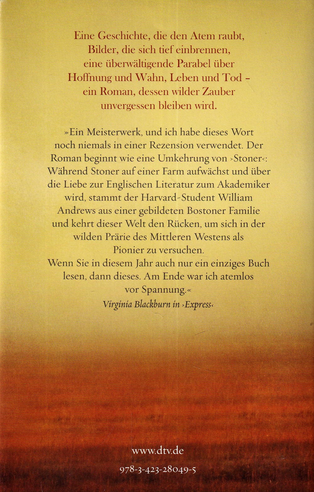 Es war um 1870, als Will Andrews der Aussicht auf eine glänzende Karriere und Harvard den Rücken kehrt. Beflügelt von der Naturauffassung Ralph W. Emersons, sucht er im Westen nach einer »ursprünglichen Beziehung zur Natur«. In Butcher’s Crossing, einem kleinen Städtchen in Kansas, am Rande von Nirgendwo, wimmelt es von rastlosen Männern, die das Abenteuer suchen und schnell verdientes Geld ebenso schnell wieder vergeuden. Einer von ihnen lockt Andrews mit Geschichten von riesigen Büffelherden, die, versteckt in einem entlegenen Tal tief in den Colorado Rockies, nur eingefangen werden müssten: Andrews schliesst sich einer Expedition an, mit dem Ziel, die Tiere aufzuspüren. Die Reise ist aufreibend und strapaziös, aber am Ende erreichen die Männer einen Ort von paradiesischer Schönheit. Doch statt von Ehrfurcht werden sie von Gier ergriffen – und entfesseln eine Tragödie. Ein Roman darüber, wie man im Leben verliert und was man dabei gewinnt.