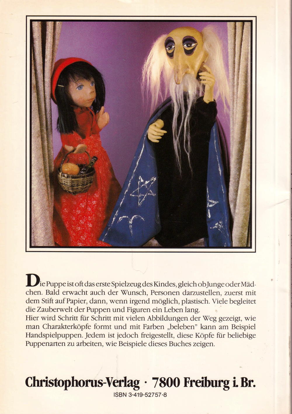 Hier wird Schritt für Schritt mit vielen Abbildungen der Weg gezeigt, wie man Charakterköpfe formt und mit Farben „beleben" kann am Beispiel Handspielpuppen. Jedem ist jedoch freigestellt, diese Köpfe für beliebige Puppenarten zu arbeiten, wie Beispiele dieses Buches zeigen.