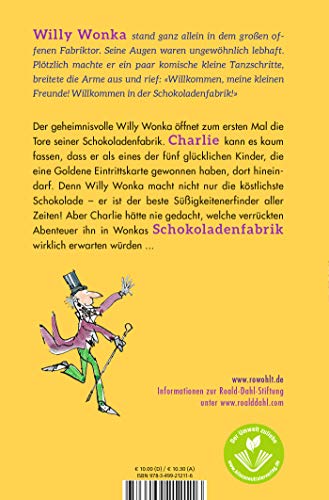 Willy Wonka stand ganz allein in dem grossen offenen Fabriktor. Seine Augen waren ungewöhnlich lebhaft. Plötzlich machte er ein paar komische kleine Tanzschritte, breitete die Arme aus und rief: «Willkommen, meine kleinen Freunde! Willkommen in der Schokoladenfabrik!»