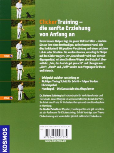 Wie dies funktioniert? Mit positiver Verstärkung und einem präzisen Lob in jeder Situation. Sie werden staunen, wie eifrig Ihr Welpe auf den Clicker reagiert. Der "Knackfrosch" wird zum Verständigungsmittel, mit dem Sie Ihrem Welpen eine Botschaft übermitteln: "Fein, das hast du gut gemacht" und Übungen wie "Sitz!", "Platz!" und "Fuß!" werden zum Vergnügen für Hund und Mensch.