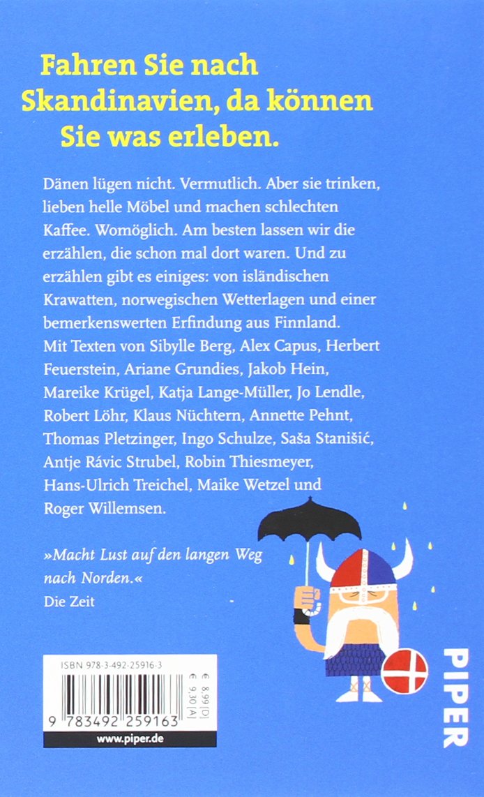 Dänen lügen nicht. Vermutlich. Aber sie trinken, lieben helle Möbel und machen schlechten Kaffee. Womöglich. Am besten lassen wir die erzählen, die schon mal dort waren. Und zu erzählen gibt es einiges: von isländischen Krawatten, norwegischen Wetterlagen und einer bemerkenswerten Erfindung aus Finnland. Mit Texten von Sibylle Berg, Alex Capus, Herbert Feuerstein, Ariane Grundies, Jakob Hein, Mareike Krügel, Katja Lange-Müller, Jo Lendle, Robert Löhr, Klaus Nüchtern, Annette Pehnt, Thomas Pletzinger, Ingo Schulze, Sasa Stanisic, Antje Rávic Strubel, Robin Thiesmeyer, Hans-Ulrich Treichel, Maike Wetzel und Roger Willemsen.
