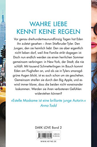 Vor genau dreihundertneunundfünzig Tagen hat Eden ihn zuletzt gesehen – ihren Stiefbruder Tyler. Den Jungen, den sie heimlich liebt. Den sie aber eigentlich nicht lieben darf, weil ihre Familie strikt dagegen ist. Doch nun endlich werden sie einen herrlichen Sommer gemeinsam verbringen: in New York, der Stadt, die nie schläft. Mit tausend Schmetterlingen im Bauch kommt Eden am Flughafen an, und als sie in Tylers smaragdgrüne Augen blickt, ist es auch schon um sie geschehen. Gemeinsam streifen sie durch den Big Apple, und es wird immer klarer, dass die beiden nicht voneinander losgekommen sind. Werden sie ihren verbotenen Gefühlen widerstehen können?