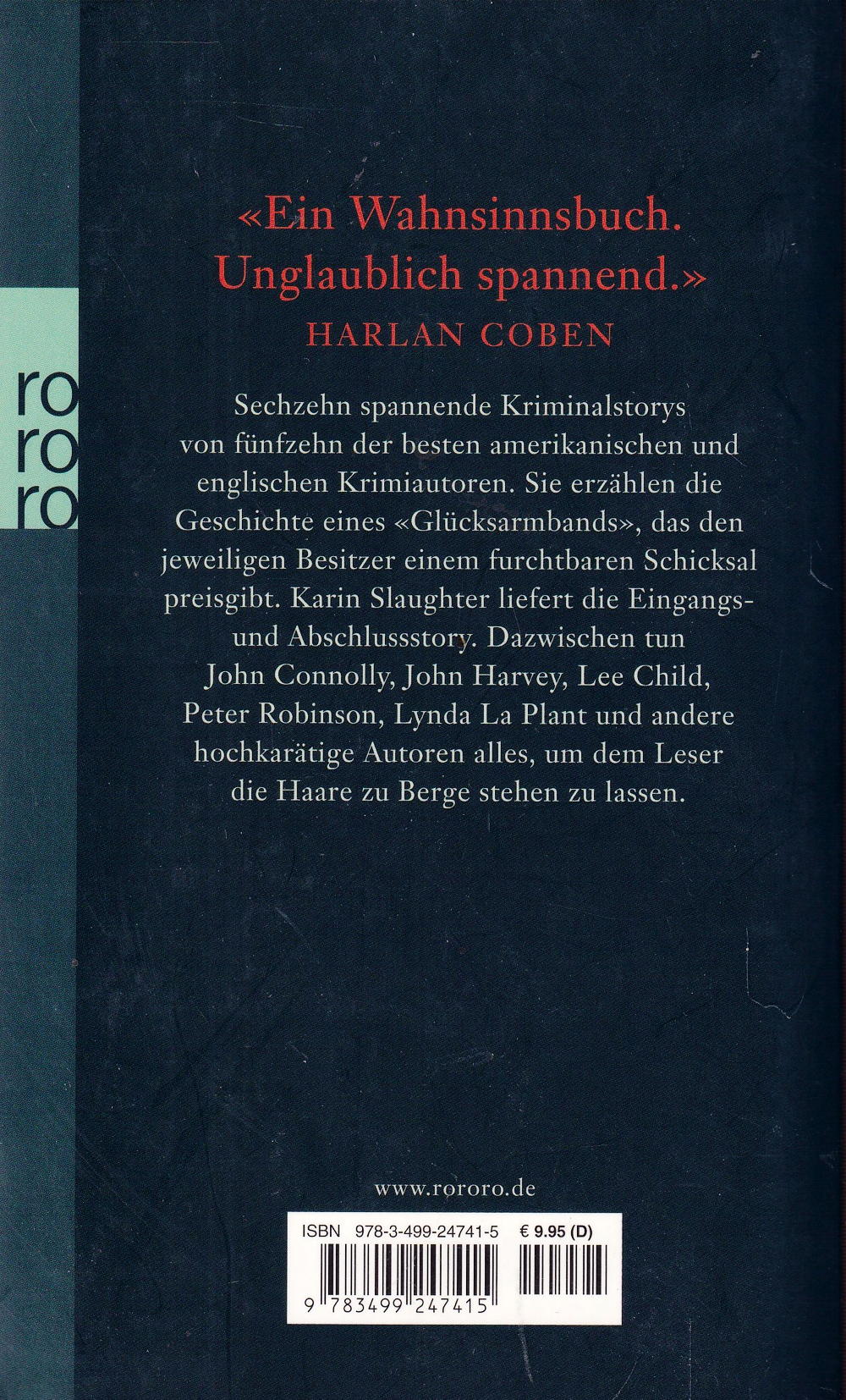 Sechzehn spannende Storys erzählen die Geschichte eines *Glücksarmbands", das den jeweiligen Träger des Schmucks einem furchtbaren Schicksal preisgibt. Karin Slaughter und andere hochkarätige Autoren tun alles, um dem Leser die Haare zu Berge stehen zu lassen.