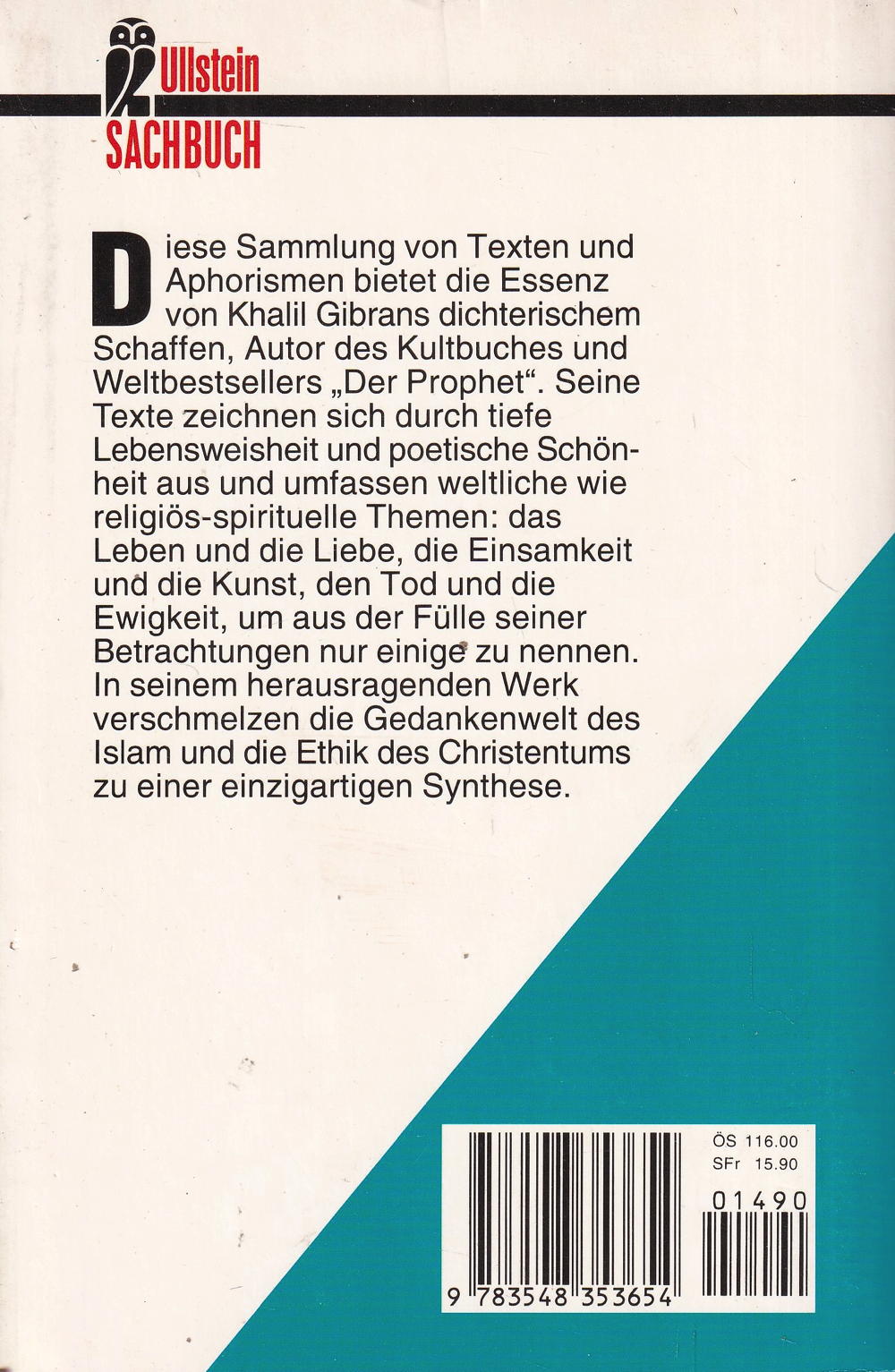 Diese Sammlung von Texten und Aphorismen bietet die Essenz von Khalil Gibrans dichterischem Schaffen, Autor des Kultbuches und Weltbestsellers „Der Prophet“。Seine Texte zeichnen sich durch tiefe Lebensweisheit und poetische Schönheit aus und umfassen weltliche wie religiös-spirituelle Themen: das Leben und die Liebe, die Einsamkeit und die Kunst, den Tod und die Ewigkeit, um aus der Fülle seiner Betrachtungen nur einige zu nennen.