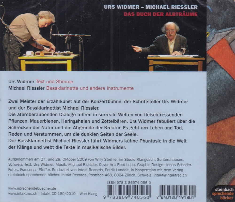 Zwei Meister der Erzählkunst auf der Konzertbühne: der Schriftsteller Urs Widmer und der Bassklarinettist Michael Riessler. Die atemberaubenden Dialoge führen in surreale Welten von fleischfressenden Pflanzen, Mauerbienen, Heringshaien und Zottelbären. Urs Widmer fabuliert über die Schrecken der Natur und die Abgründe der Kreatur. Es geht um Leben und Tod, Reden und Verstummen, um die dunklen Seiten der Seele. Der Bassklarinettist Michael Riessler führt Widmers kühne Phantasie in die Welt der Klänge und webt die Texte in musikalische Bilder.