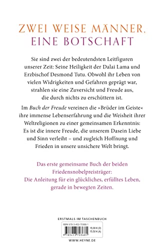 Sie sind zwei der bedeutendsten Leitfiguren unserer Zeit: Seine Heiligkeit der Dalai Lama und Erzbischof Desmond Tutu. Obwohl ihr Leben von vielen Widrigkeiten und Gefahren geprägt war, strahlen sie eine Zuversicht und Freude aus, die durch nichts zu erschüttern ist. In diesem Buch vereinen die »Brüder im Geiste« ihre immense Lebenserfahrung und die Weisheit ihrer Weltreligionen zu einer gemeinsamen Erkenntnis: Es ist die innere Freude, die unserem Dasein Liebe und Sinn verleiht – und zugleich Hoffnung und Frieden in unsere unsichere Welt bringt.