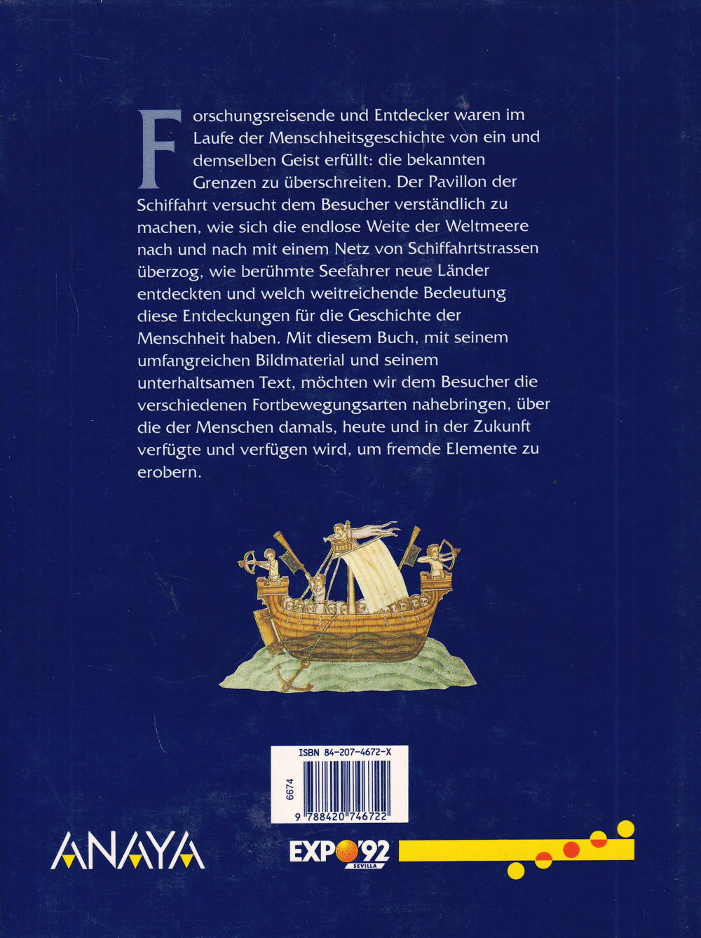 Orschungsreisende und Entdecker waren im Laufe der Menschheitsgeschichte von ein und F demselben Geist erfüllt: die bekannten Grenzen zu überschreiten. Der Pavillon der Schiffahrt versucht dem Besucher verständlich zu machen, wie sich die endlose Weite der Weltmeere nach und nach mit einem Netz von Schiffahrtstrassen überzog, wie berühmte Seefahrer neue Länder entdeckten und welch weitreichende Bedeutung diese Entdeckungen für die Geschichte der Menschheit haben. Mit diesem Buch, mit seinem umfangreichen Bildmaterial und seinem unterhaltsamen Text, möchten wir dem Besucher die verschiedenen Fortbewegungsarten nahebringen, über die der Menschen damals, heute und in der Zukunft verfügte und verfügen wird, um fremde Elemente zu erobern.