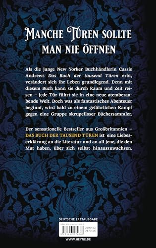 Die junge Buchhändlerin Cassie Andrews führt ein normales Leben in New York – bis sie eines Tages ein Buch voll geheimnisvoller Zeichnungen und verschlüsselter Notizen bekommt. Und einer Widmung: Dies ist das Buch der Türen, und jede Tür ist jede Türen. Cassie entdeckt, dass das Buch magische Kräfte hat und sie zu jeder Zeit an jeden Ort der Welt bringen kann. Gemeinsam mit ihrer besten Freundin Izzy reist Cassie an die spektakulärsten Orte und erlebt die faszinierendsten Abenteuer. Das Buch der Türen ist zwar nicht das einzige magische Buch auf der Welt, sehr wohl aber das mächtigste, und bald sind skrupellose Büchersammler hinter Cassie her, um das wertvolle Stück in ihren Besitz zu bringen. In den falschen Händen hätte die Magie des Buches jedoch katastrophale Folgen, und der Einzige, der Cassie jetzt noch helfen kann, ist der geheimnisvolle Bibliothekar Drummond Fox …