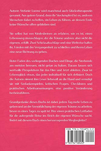 Doch wenn du nicht aus dem Schatten trittst, wird es dir nie gelingen, das Leben zu führen, das dich wirklich glücklich macht...Stattdessen wirst du kurz vor deinem Tod all das bereuen, was du nicht getan hast. Autorin Stefanie Lorenz war selber jahrzehntelang im falschen Leben unterwegs. Erst nach zwei kurz aufeinander folgenden Schicksalsschlägen unternahm sie ihre persönliche Kurskorrektur. Heute praktiziert sie als Coach für Psychotherapie. Im Fokus ihrer Arbeit steht dabei die Aussöhnung mit der Vergangenheit, das Loslassen und Überwinden von Hindernissen und Energievampiren, Resilienz, sowie das Finden und Realisieren persönlicher Lebensträume. Ihr Buch Hätte ich mal... ist eine grossartige Anleitung und ein Wegbegleiter, der Mut macht, längst überfällige Veränderungen zu wagen: Du hast den Blick verloren auf das, was wirklich zählt im Leben? Entdecke mit diesem Buch, wie du deinen Kernthemen auf die Spur kommst. Du weisst gar nicht, ob deine Träume wirklich deine eigenen sind? Reise zurück in deine Kindheit und decke die Muster auf, die dich daran hindern, mit mehr Selbstliebe das Ruder deines Lebens in die Hand zu nehmen. Wusstest du, welche Dinge Menschen kurz vor ihrem Tod am meisten bereuen? Finde deinen Weg durch die Erinnerungen anderer und lege falsche Rücksichtnahme ab. Versteckst du dich hinter deiner Arbeit? Schau dir das Kapitel zu Work-Life-Balance an und finde heraus, wie du dir selbst wieder eine Chance geben kannst. Hast du Angst vor Fehlentscheidungen? Erfahre, wie du dich achtsam auf den Weg zu dir selbst machst und die garantiert richtige Entscheidung triffst. Möchtest du deinen Wünschen auf die Spur kommen? Lerne, wie du Glaubenssätze auflöst, auf dein Bauchgefühl hörst und sogar negative Gefühle wie Neid konstruktiv nutzt. Brauchst du noch den finalen Input, um endlich mit deiner Veränderung zu beginnen? Lasse dich einfach von den Anleitungen im Buch an die Hand nehmen und deine Wandlung passiert im Handumdrehen. Jetzt liegt es an dir - möchtest du das Leben eines anderes führen? Oder stattdessen aus jedem Tag das Beste für dich selbst machen? Klicke jetzt auf “Jetzt kaufen”, um endlich deine Lebensträume zu verwirklichen.
