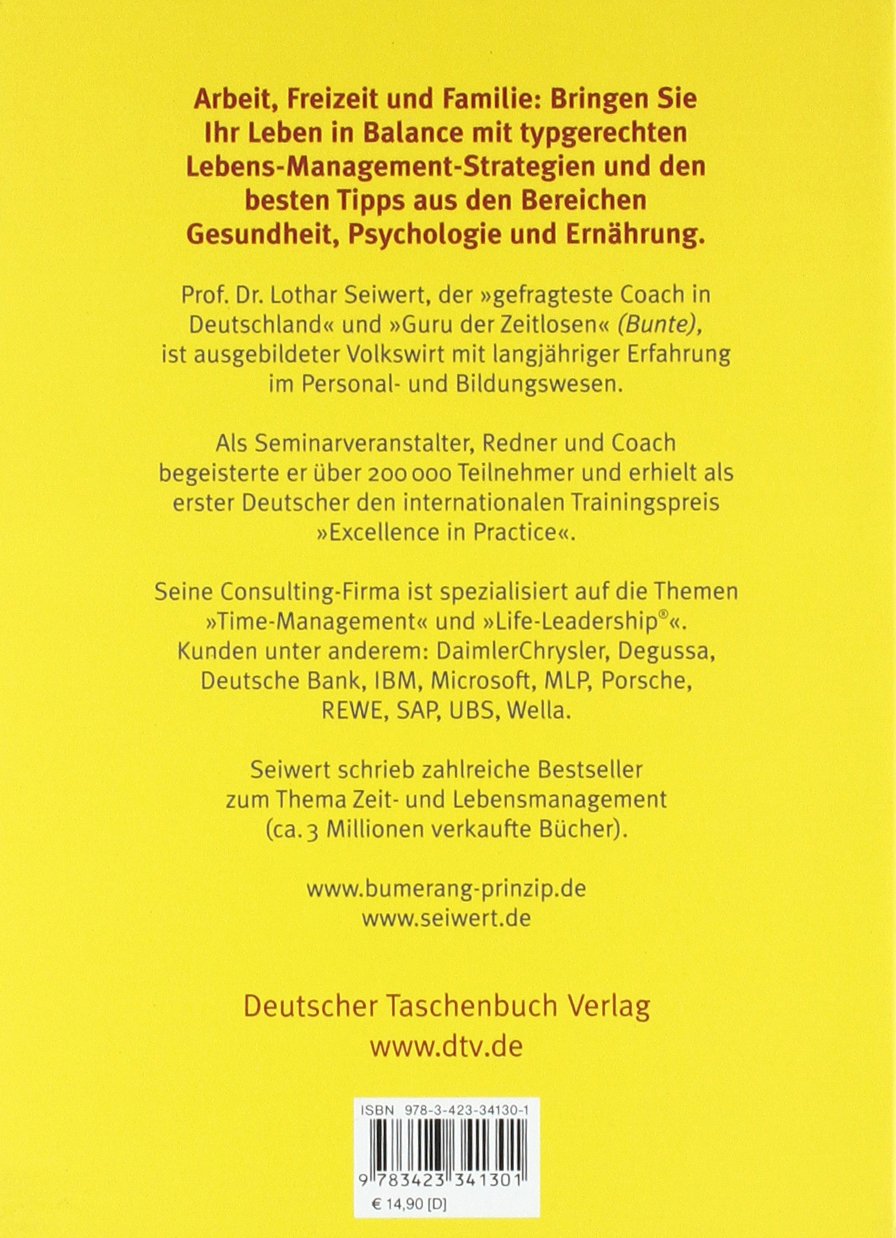 Lebenszeit ist das kostbarste Gut, das wir besitzen. Doch anstatt sie für unser Glück zu nutzen, fühlen wir uns nur allzu oft gefangen in der Leistungsfalle, leiden unter Hektik, Stress oder Angst. ›Das Bumerang-Prinzip‹ zeigt, wie Sie Ihre ganz persönliche Balance finden zwischen Arbeit und Freizeit, Familie und Hobbys, Erfolg und Entspannung.