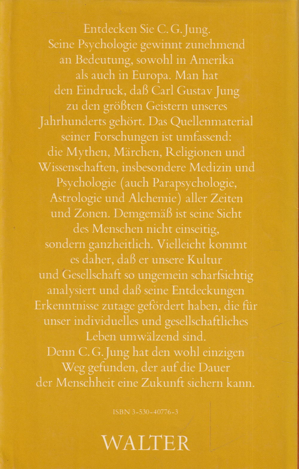 Seine Psychologie gewinnt zunehmend an Bedeutung, sowohl in Amerika als auch in Europa. Man hat den Eindruck, dass Carl Gustav Jung zu den grössten Geistern unseres Jahrhunderts gehört. Das Quellenmaterial seiner Forschungen ist umfassend: die Mythen, Märchen, Religionen und Wissenschaften, insbesondere Medizin und Psychologie (auch Parapsychologie, Astrologie und Alchemie) aller Zeiten und Zonen. Demgemäss ist seine Sicht des Menschen nicht einseitig, sondern ganzheitlich. Vielleicht kommt es daher, dass er unsere Kultur und Gesellschaft so ungemein scharfsichtig analysiert und dass seine Entdeckungen Erkenntnisse zutage gefördert haben, die für unser individuelles und gesellschaftliches Leben umwälzend sind.