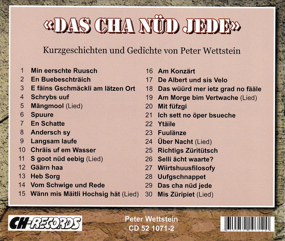 Kurzgeschichten und Gedichte von Peter Wettstein.