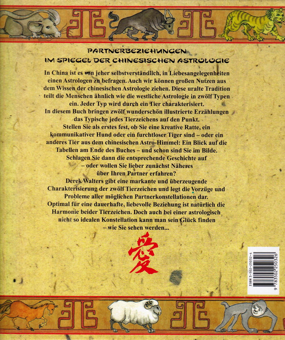 Derek Walters gibt eine markante und überzeugende Charakterisierung der zwölf Tierzeichen und legt die Vorzüge und Probleme aller möglichen Partnerkonstellationen dar.