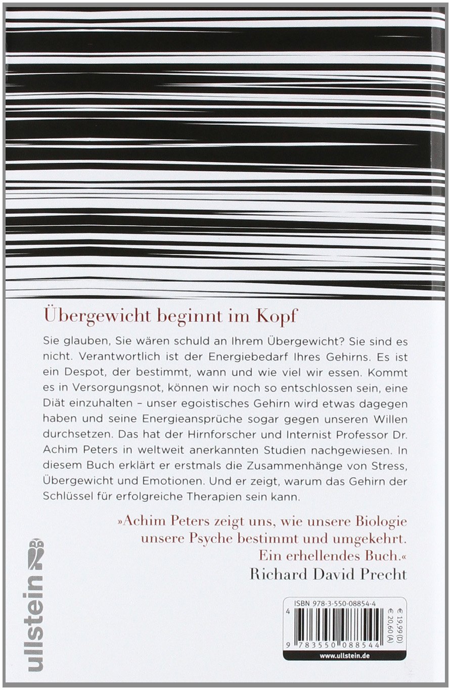 Unser Gehirn ist ein egoistischer Despot. Kommt es in Versorgungsnot, können wir noch so entschlossen sein, eine Diät einzuhalten - unser egoistisches Gehirn wird etwas dagegen haben und seine eigenen Energieansprüche sogar gegen unseren Willen durchsetzen. Das hat der renommierte Hirnforscher und Internist Professor Dr. Achim Peters in weltweit einzigartigen Studien nachgewiesen. Bei Stress reicht die übliche Energie für unser Gehirn nicht aus - wir essen mehr, um es gut zu versorgen. Wenn wir uns aber an Dauerstress gewöhnen, kann das fatale Folgen haben: Wir werden dick und bekommen die überflüssigen Kilos nicht wieder los. Hier berichtet Peters erstmals, auf welchen Forschungen seine sensationellen Erkenntnisse fussen und wie das Gehirn der Schlüssel für erfolgreiche Therapien sein kann. Dieses Buch ist eine aufregende Entdeckungsreise zu uns selbst.
