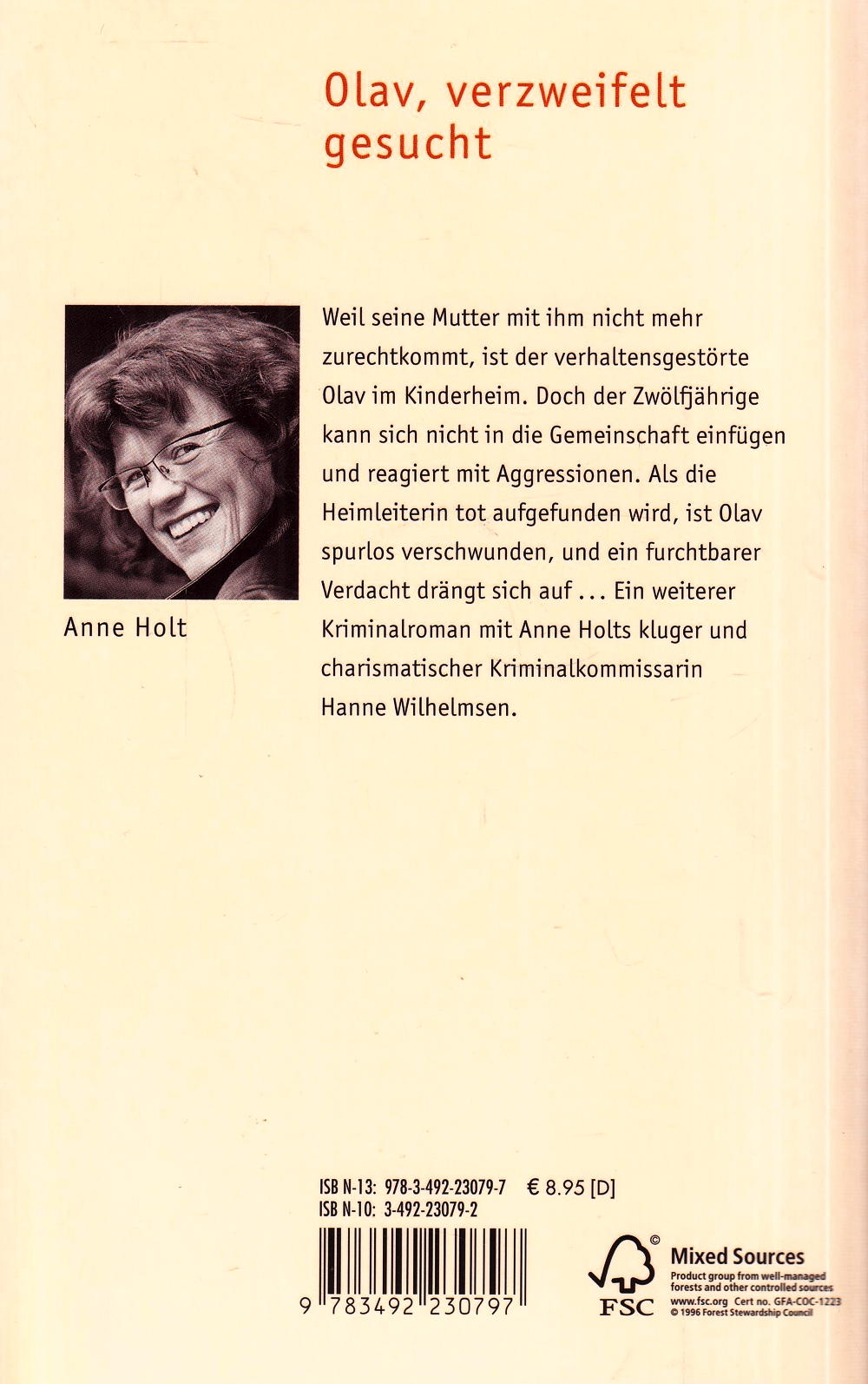 Er sieht aus wie ein Kobold. Eher noch: wie ein Dämon. Ein grosser dicker Dämon. Und aus seinen Augen spricht tiefer Hass. Dabei ist Olav erst zwölf Jahre alt. Aber seine Mutter wird schon lange nicht mehr mit ihm fertig, und deshalb ist er nun im Kinderheim »Frühlingssonne« wahrscheinlich besser aufgehoben als in einer engen Sozialwohnung. In der »Frühlingssonne« hat Agnes Vestavik die Leitung und sie kennt auch Olav gegenüber keine Nachsicht. Jetzt aber ist Agnes tot und Olav verschwunden...Mit grossem psychologischen Einfühlungsvermögen erzählt Anne Holt die Geschichte eines zutiefst verunsicherten Kindes. Zugleich aber gelingt ihr ein ebenso fesselnder wie einzigartiger Roman um ihre sympathische Osloer Kriminalkommissarin Hanne Wilhelmsen.