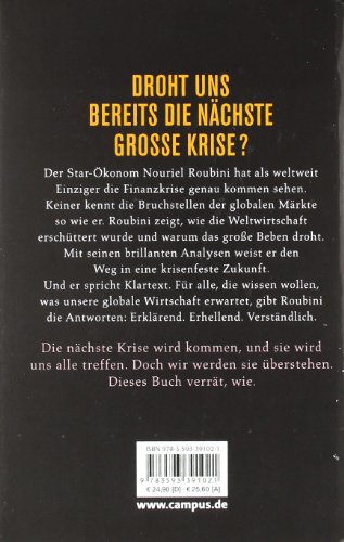 Nouriel Roubini ist der neue Superstar der Ökonomie. Kein anderer Ökonom hat so frühzeitig und präzise vor der Wirtschaftskrise gewarnt wie er. Zunächst von Fachkollegen ungläubig bestaunt, haben sich seine Prognosen als äusserst treff - sicher erwiesen. In seinem Buch liefert er eine grosse und fundierte Analyse der Krise und beantwortet die wichtigsten Fragen, die Wirtschaft, Politik und Gesellschaft aktuell bewegen, wie: Wer ist schuld an der Krise, die Märkte oder der Staat? Was ist die Zukunft des Kapitalismus? Wie können wir das globale Wirtschaftssystem reformieren, um zukünftige Krisen zu verhindern? Roubini erklärt die globalen wirtschaftlichen Zusammenhänge ganz neu. Er schaut für uns in die Zukunft und sagt, wie die Weltwirtschaft aus der Krise herauskommen kann und draussen bleiben wird.