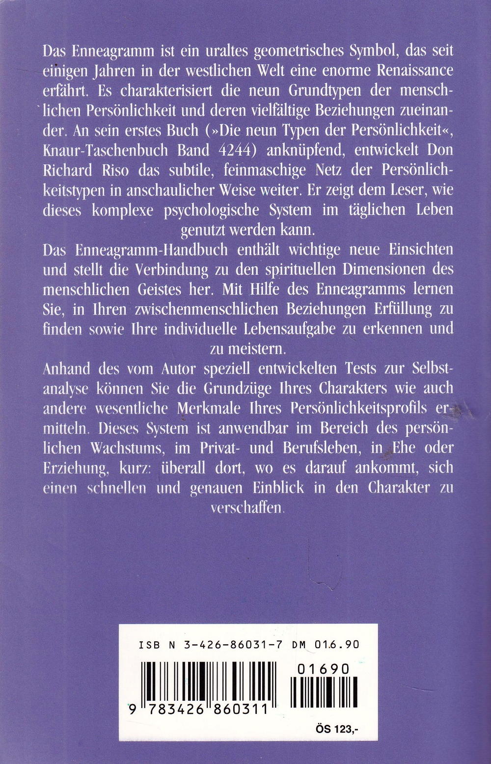 Das Enneagramm-Handbuch enthält wichtige neue Einsichten und stellt die Verbindung zu den spirituellen Dimensionen des menschlichen Geistes her. Mit Hilfe des Enneagramms lernen Sie, in Ihren zwischenmenschlichen Beziehungen Erfüllung zu finden sowie Ihre individuelle Lebensaufgabe zu erkennen und zu meistern.