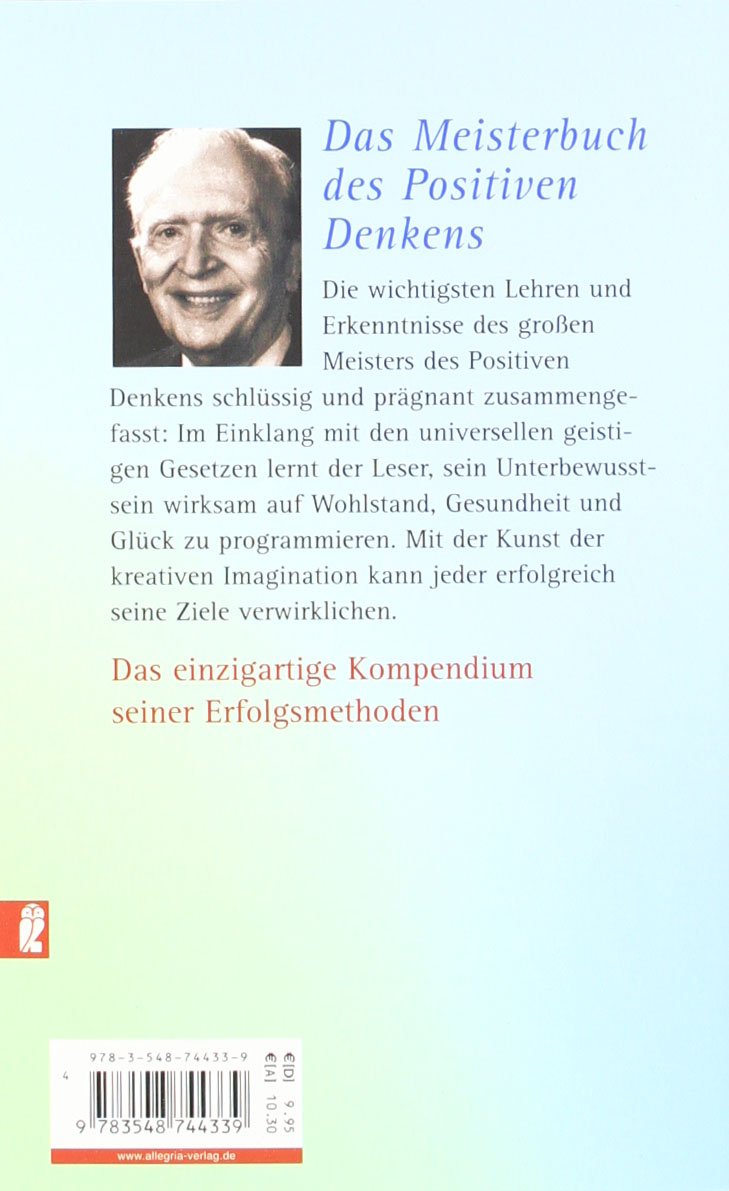 Die wichtigsten Lehren und Erkenntnisse des großen Meister des Postiven Denkens schlüssig und pregnant zusammengefaßt: Im Einklang mit den universellen geistigen Gesetzen lernt der Leser, sein Unterbewusstsein wirksam auf Wohlstand, Gesundheit und Glück zu programmieren. Mit der Kunst der kreativen Imagination kann jeder erfolgreich seine Ziele verwirklichen.