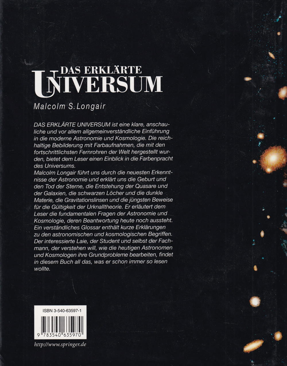Das erklärte Universum ist eine klare, anschauliche und vor allem allgemeinverständliche Einführung in die moderne Astronomie und Kosmologie. Die reichhaltige Bebilderung mit Farbaufnahmen, die mit den fortschrittlichsten Fernrohren der Welt hergestellt wurden, bietet dem Leser einen Einblick in die Farbenpracht des Universums.