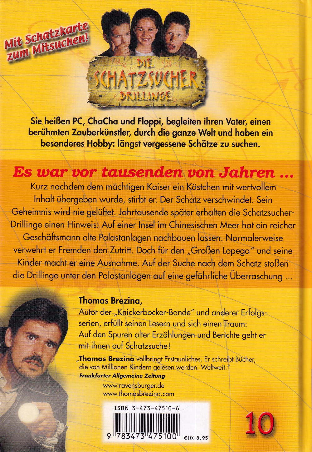 Kurz nachdem dem mächtigen Kaiser ein Kästchen mit wertvollem Inhalt übergeben wurde, stirbt er. Der Schatz verschwindet. Sein Geheimnis wird nie gelüftet. Jahrtausende später erhalten die Schatzsucher-Drillinge einen Hinweis: Auf einer Insel im Chinesischen Meer hat ein reicher Geschäftsmann alte Palastanlagen nachbauen lassen. Normalerweise verwehrt er Fremden den Zutritt. Doch für den „Grossen Lopega" und seine Kinder macht er eine Ausnahme. Auf der Suche nach dem Schatz stossen die Drillinge unter den Palastanlagen auf eine gefährliche Überraschung...