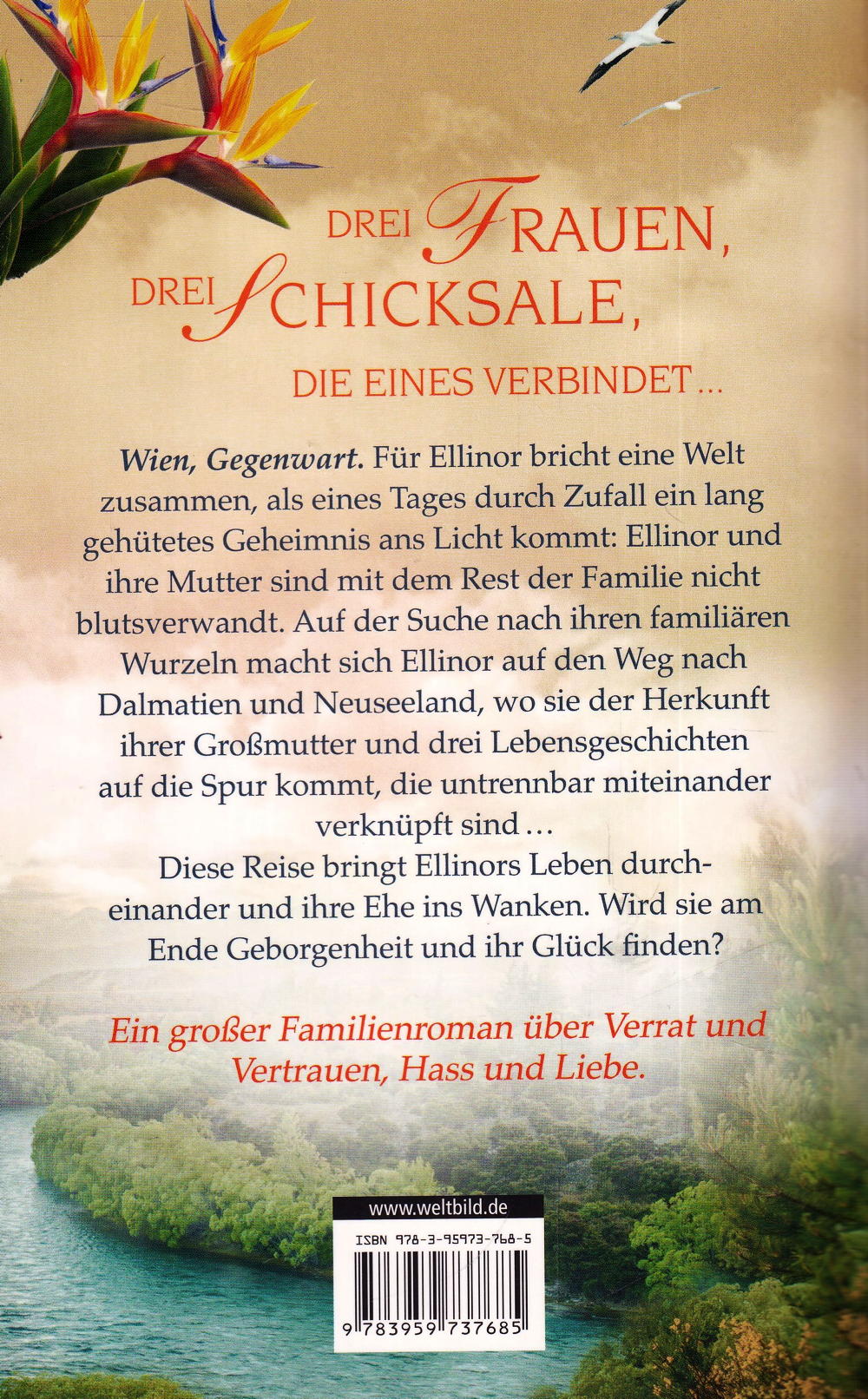 Wien, Gegenwart. Für Ellinor bricht eine Welt zusammen, als eines Tages durch Zufall ein lang gehütetes Geheimnis ans Licht kommt: Ellinor und ihre Mutter sind mit dem Rest der Familie nicht blutsverwandt. Auf der Suche nach ihren familiären Wurzeln macht sich Ellinor auf den Weg nach Dalmatien und Neuseeland, wo sie der Herkunft ihrer Grossmutter und drei Lebensgeschichten auf die Spur kommt, die untrennbar miteinander verknüpft sind...