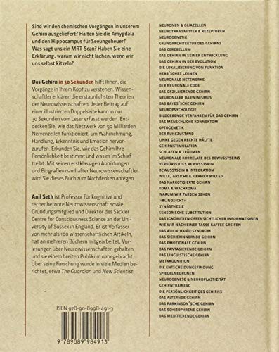In diesem Buch erklären Wissenschaftler die erstaunlichsten Theorien der Neurowissenschaften. Jeder Beitrag kann in nur 30 Sekunden vom Leser erfasst werden. Entdecken Sie, wie das Netzwerk von 90 Milliarden Nervenzellen funktioniert, um Wahrnehmung, Handlung, Erkenntnis und Emotion hervorzurufen. Erkunden Sie, wie das Gehirn Ihre Persönlichkeit bestimmt und was es im Schlaf treibt. Mit seinen erstklassigen Abbildungen und Biografien namhafter Neurowissenschaftler wird Sie dieses Buch zum Nachdenken anregen.
