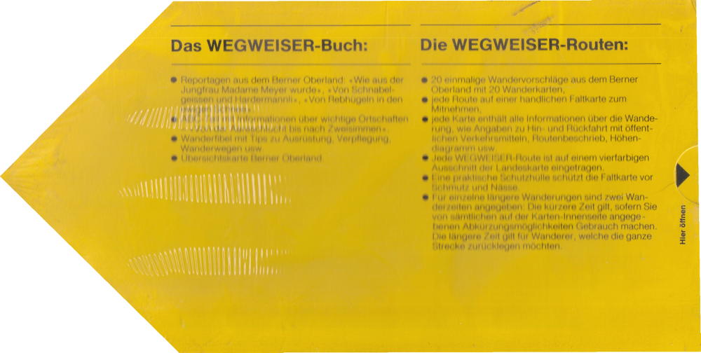 Reportagen aus dem Berner Oberland: «Wie aus der Jungfrau Madame Meyer wurde, Von Schnabelgeissen und Hardermannlis, Von Rebhügein in den nomationen über wichtige Ortschaften Chucht bis nach Zweisimmen Wanderfibel mit Tips zu Ausrüstung. Verpflegung. Wanderwegen usw.