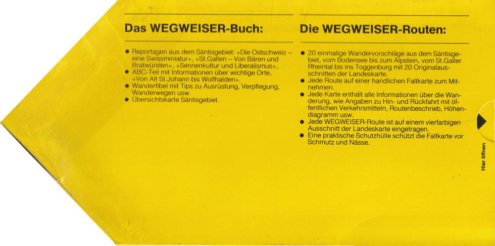 Reportagen aus dem Säntisgebiet: «Die Ostschweiz eine Swissminiatur», «St. Gallen-Von Bären und Bratwürsten», «Sennenkultur und Liberalismus», ABC-Teil mit Informationen über wichtige Orte,