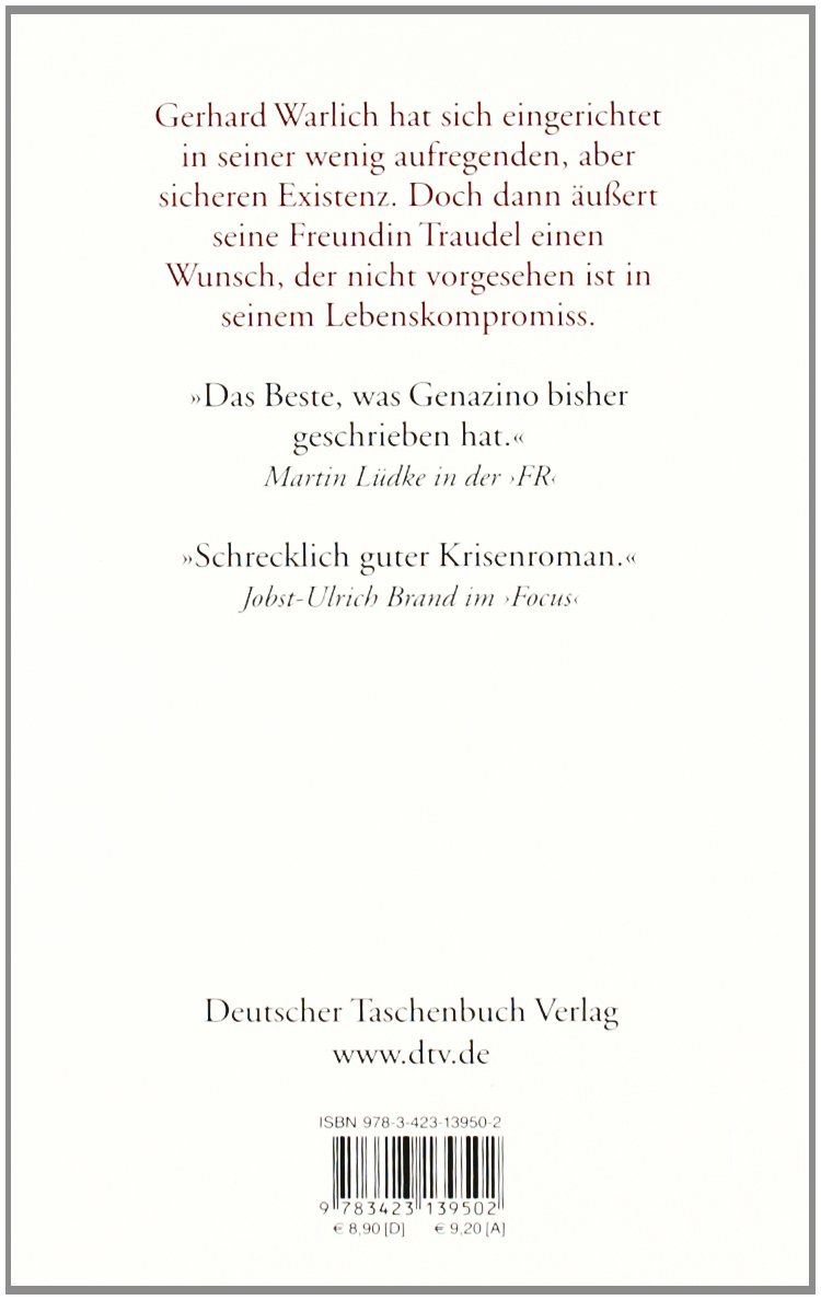 Der Arbeitsmarkt kennt keine Gnade, erst recht nicht für promovierte Philosophen. Daher nimmt Gerhard Warlich einen Job in einer Grosswäscherei an und richtet sich ein in seiner wenig aufregenden, aber sicheren Existenz. Doch als sich seine Freundin Traudel ein Kind wünscht, gerät Warlich, der am liebsten nur halbtags leben möchte, völlig aus dem Tritt. Genazino erzählt diese Geschichte eines traurigen Helden, eines an Details leidenden Alltagsmelancholikers, und seiner viel weniger traurigen Freundin mit verblüffender Lakonie.