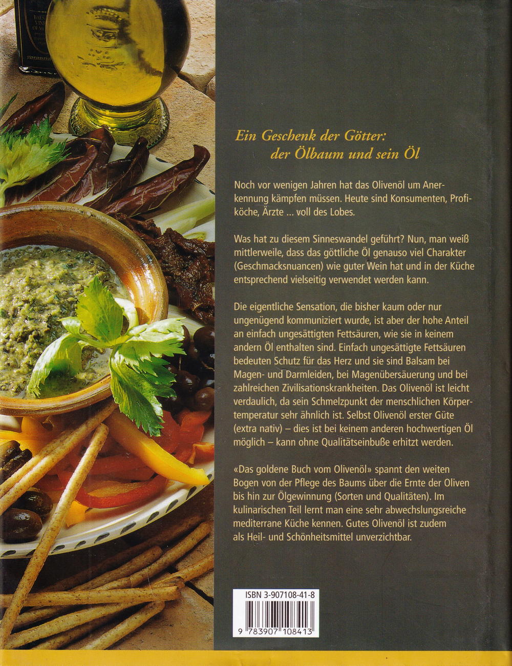 «Das goldene Buch vom Olivenöl» spannt den weiten Bogen von der Pflege des Baums über die Ernte der Oliven bis hin zur Ölgewinnung (Sorten und Qualitäten). Im kulinarischen Teil lernt man eine sehr abwechslungsreiche mediterrane Küche kennen. Gutes Olivenöl ist zudem als Heil- und Schönheitsmittel unverzichtbar.
